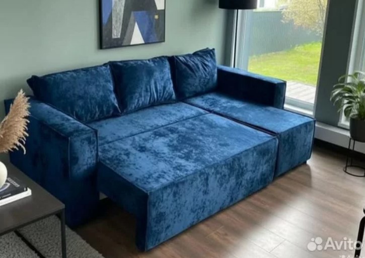 Модель: Угловой диван Лофт плюш синий