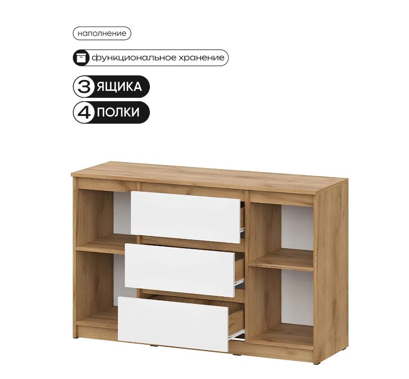 Модель: Комод комбинированный Денвер, Дуб золотой, Белый